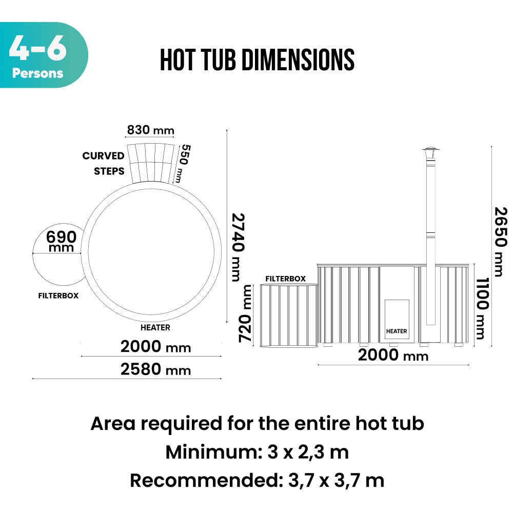 Wood Fired Hot Tub with Jets | Integrated Verta™ stove, Sand filter & UV-C | 16 Hydro jets | 4–6 seater