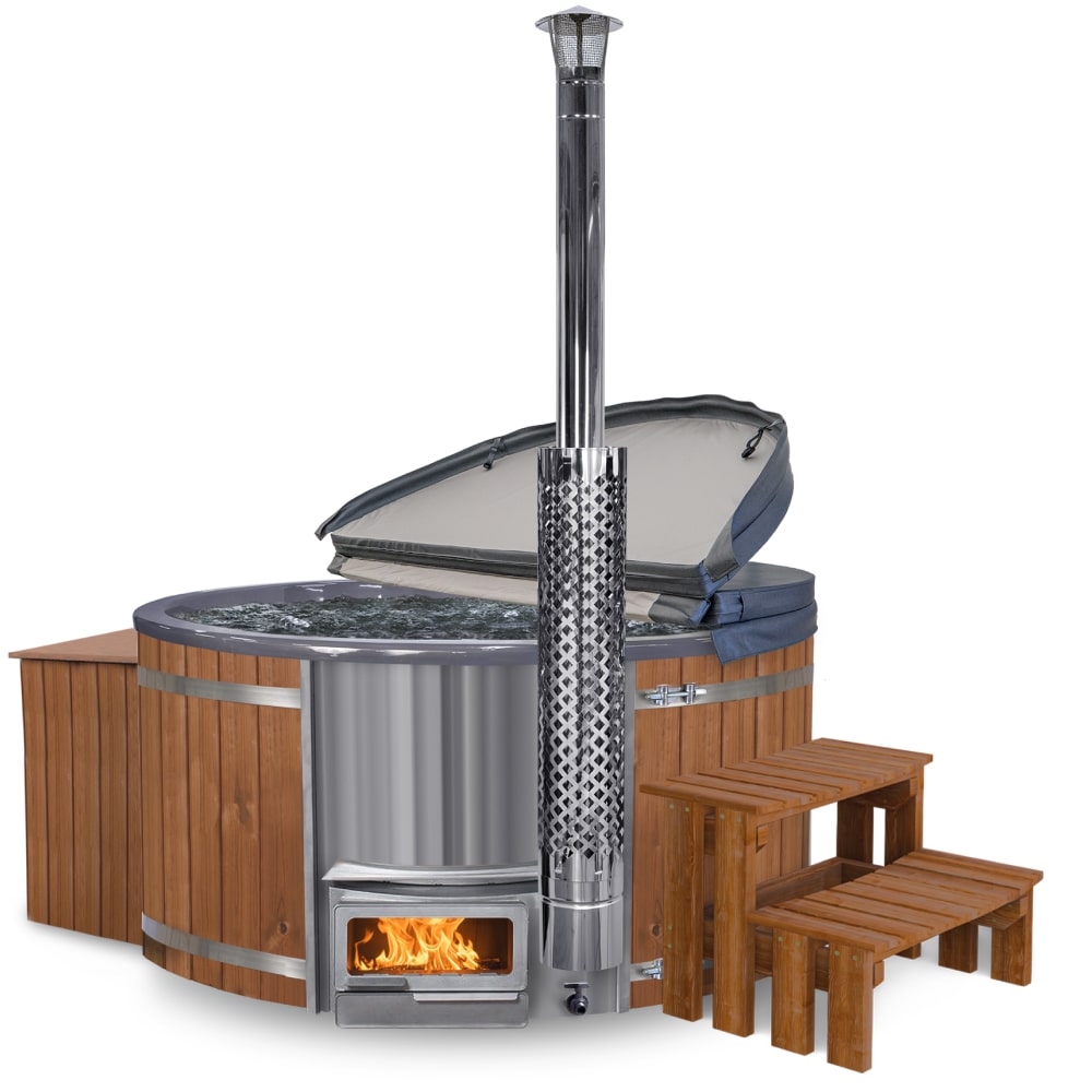 Kulatý koupací sud pro 4–6 osob s integrovanými kamny Verta