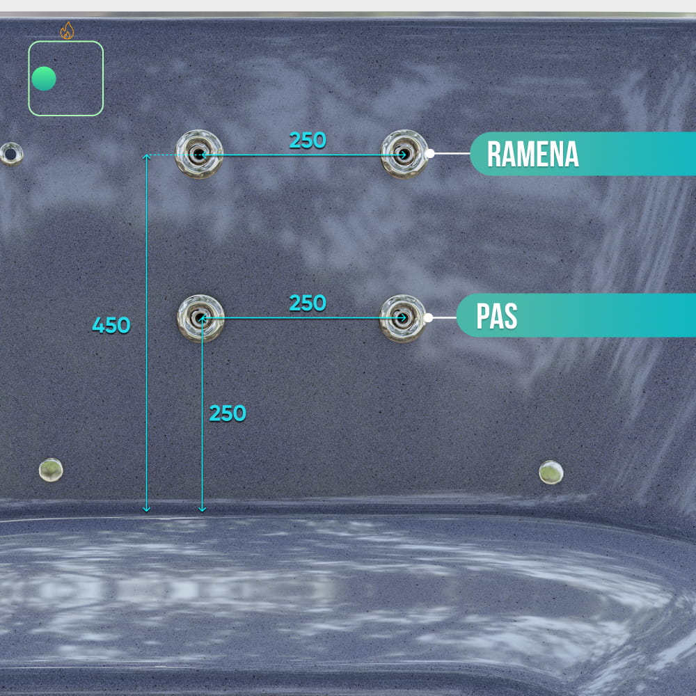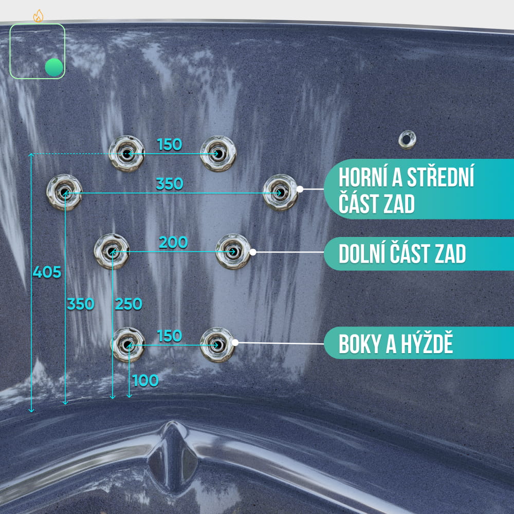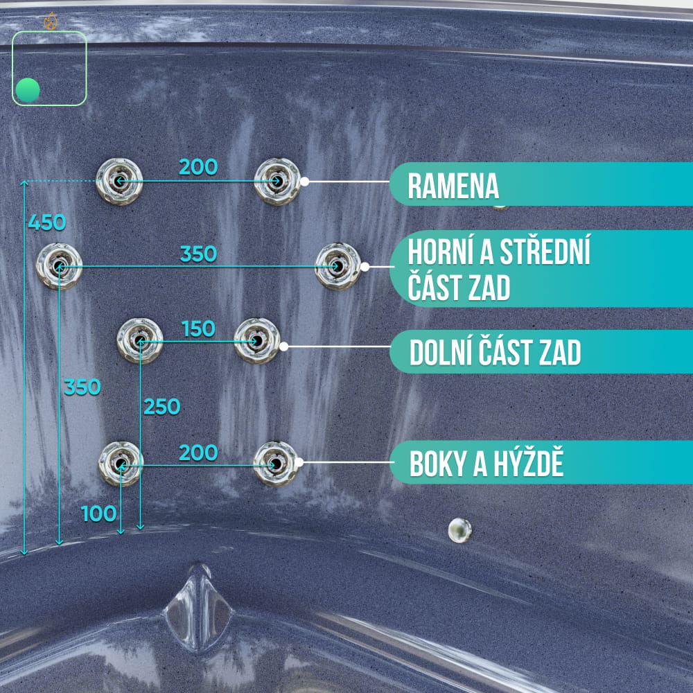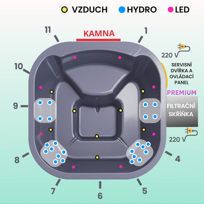 - Hydromasážní systém, 24 trysek, 4 čerpadla (23 690 Kč)