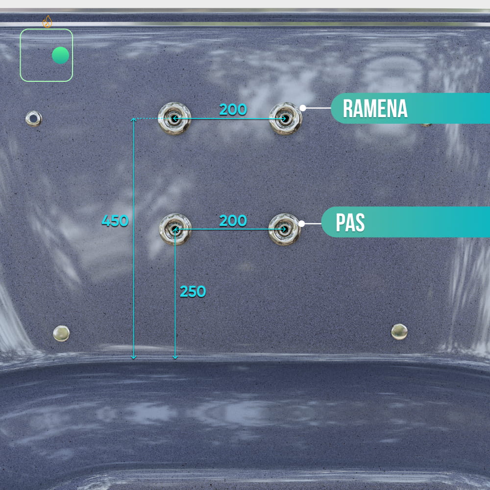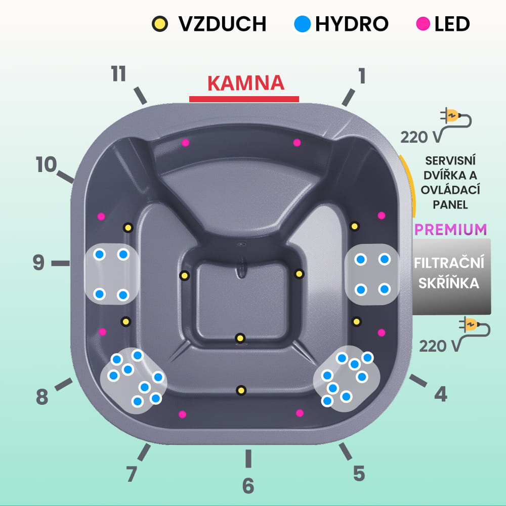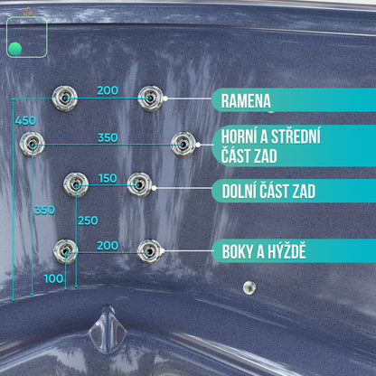 - Vzduchová masážní soustava, 8 trysek, 0,7 kW (8 040 Kč)