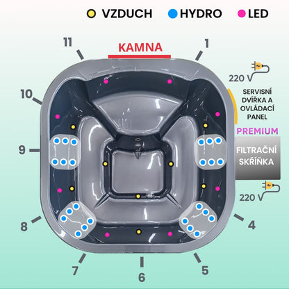 - Vzduchová masážní soustava, 8 trysek, 0,7 kW (8 040 Kč)