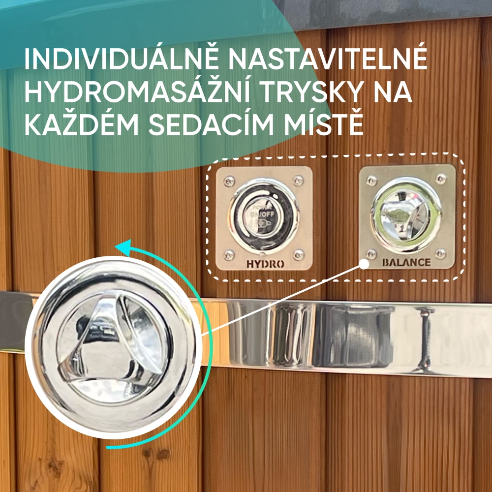 - Hydromasážní systém, 28 trysek, čtyři čerpadla (29 827 Kč)