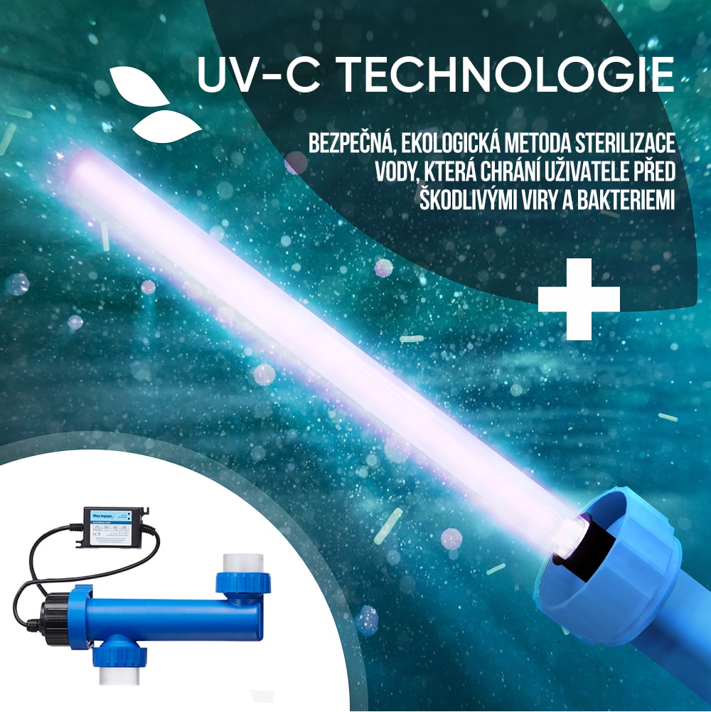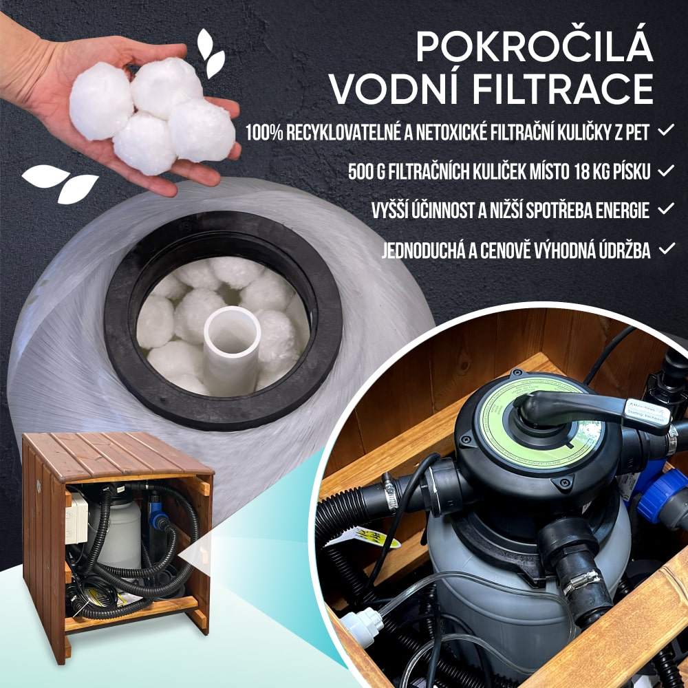 - Pískový filtr s filtračními kuličkami a filtrační skříňkou, sterilizační systém vody Blue Lagoon UV-C (26 440 Kč)