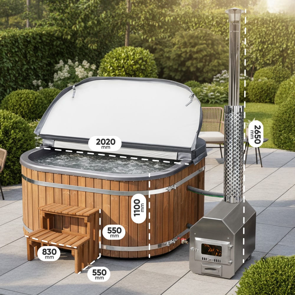 Koupací sud Ofuro | Sklolaminát | Integrovaná kamna | Pro 2 osoby | Konfigurovatelný