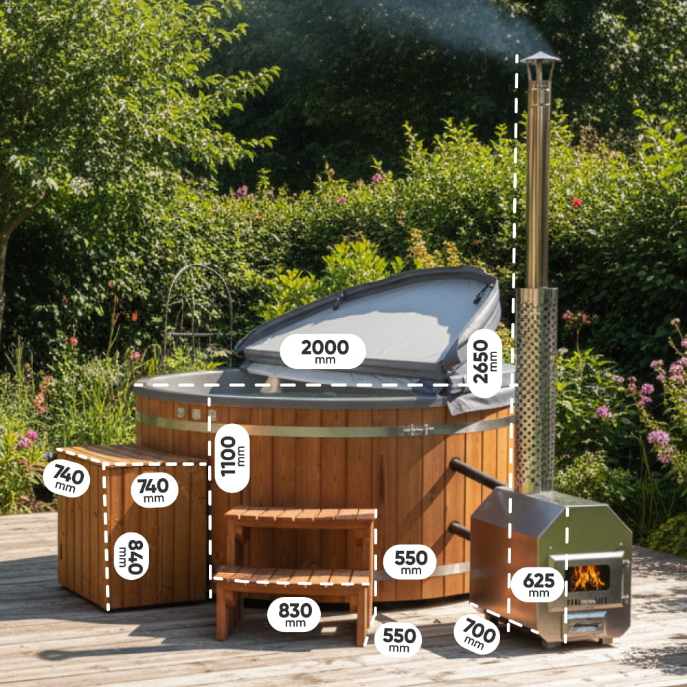 Prémiový filtrační systém koupací sud | externí kamna | 24 hydromasážních trysek | pro 4–8 osob | AISI 316