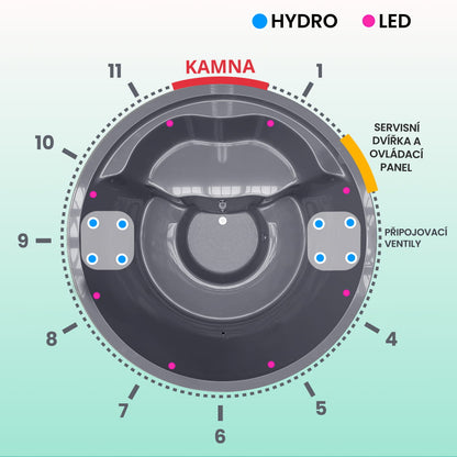 Koupací sud s hydromasážními tryskami a LED osvětlením pro 4–6 osob