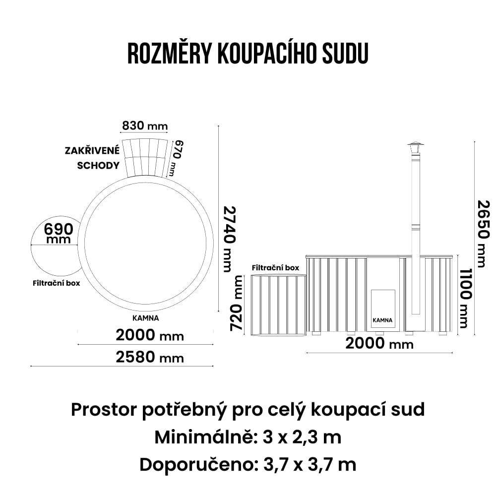 Koupací sud s kulatým filtrem premium a kamny Verta | Nejlepší výbava