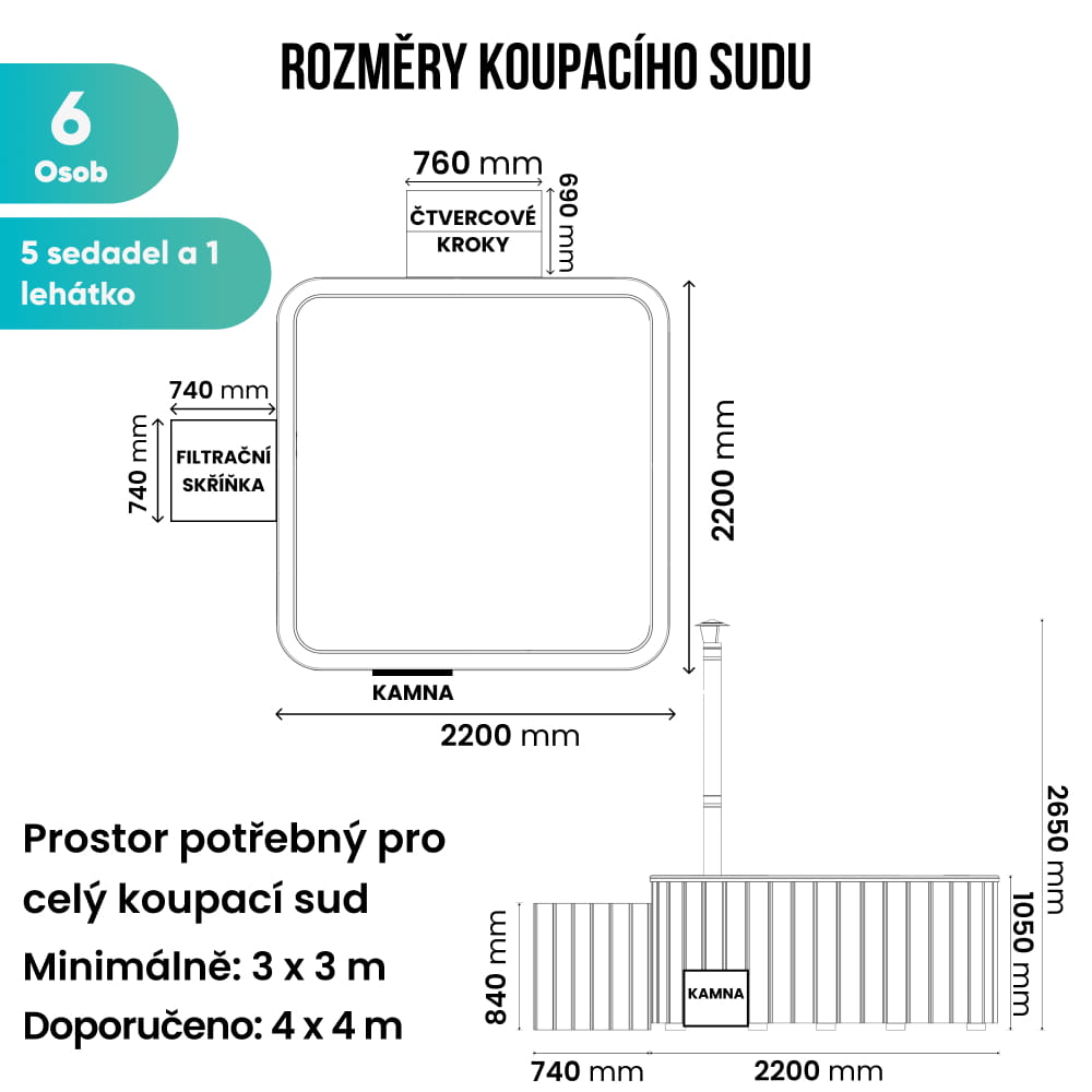 - Koupací sud pro 6 osob (5 sedadel a 1 lehátko) s akrylovou vložkou (125 928 Kč)