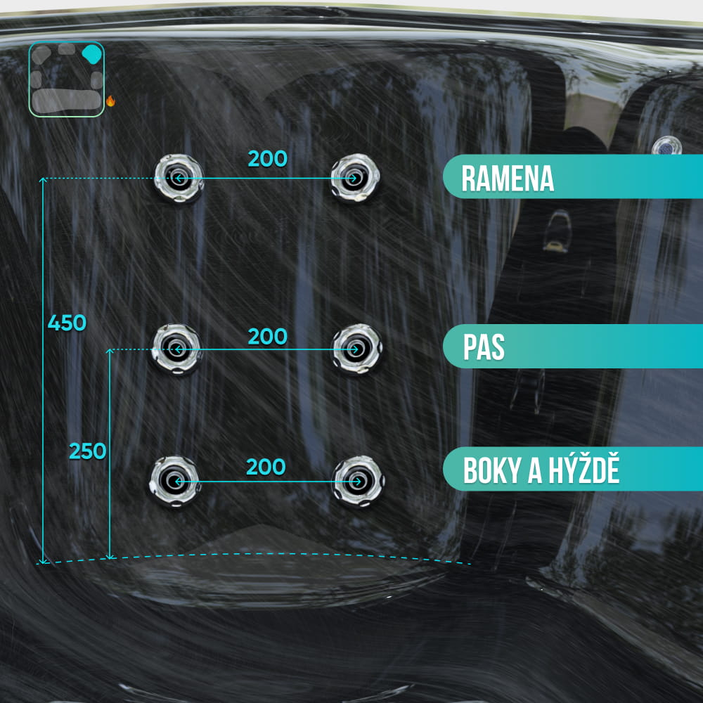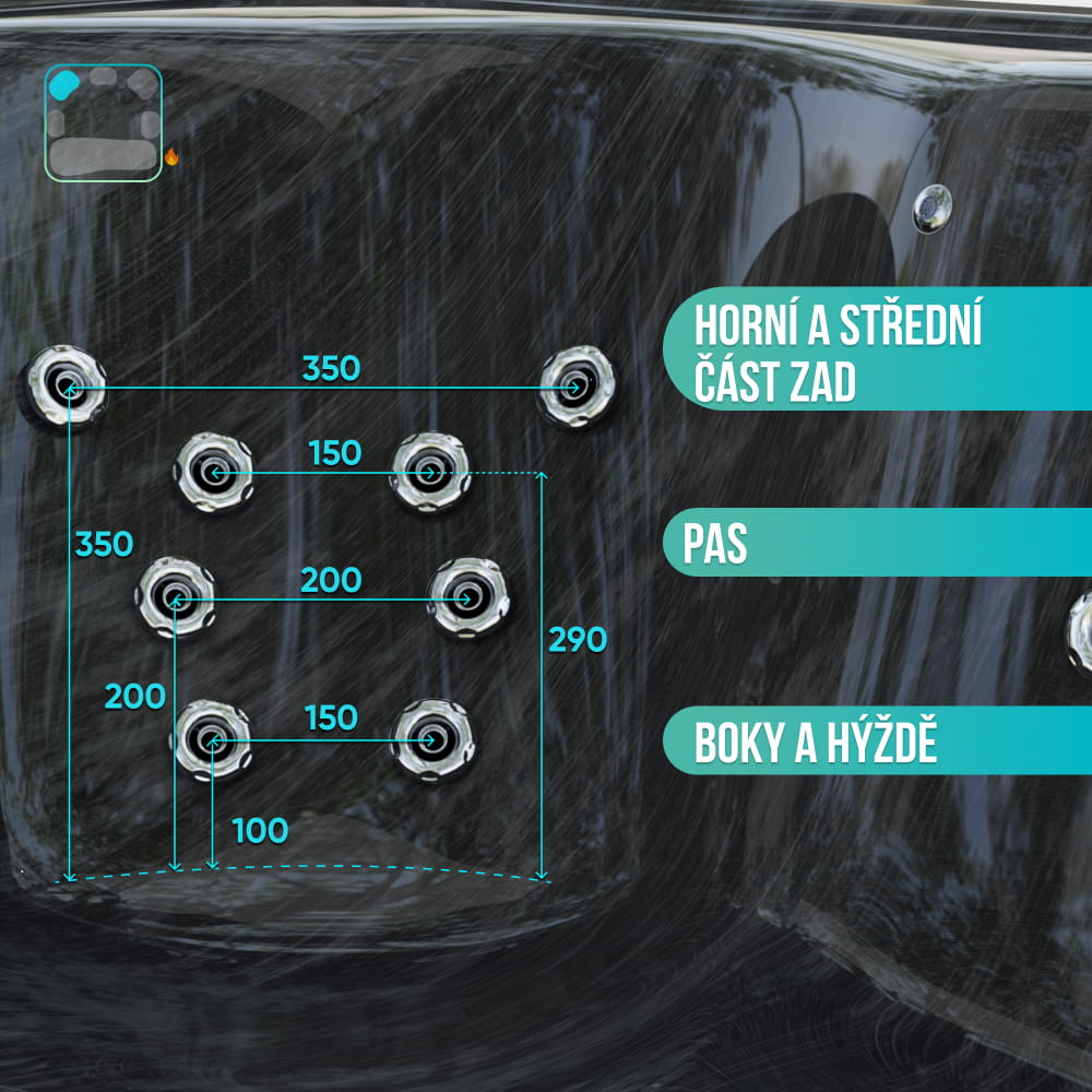 - Hydromasážní systém, 34 trysek (34 496 Kč)