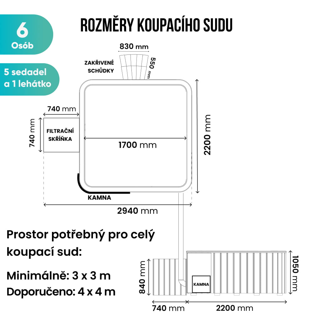 - Koupací sud pro 6 osob (5 sedadel a 1 lehací pozice) s akrylátovou vložkou (mramorová černá barva) (87 786 Kč)