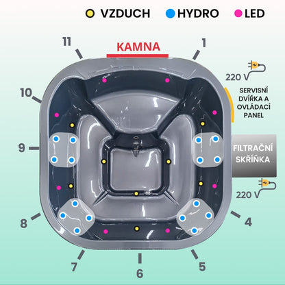 • Vzduchová masážní soustava, 8 trysek, 0,7 kW (8 040 Kč)